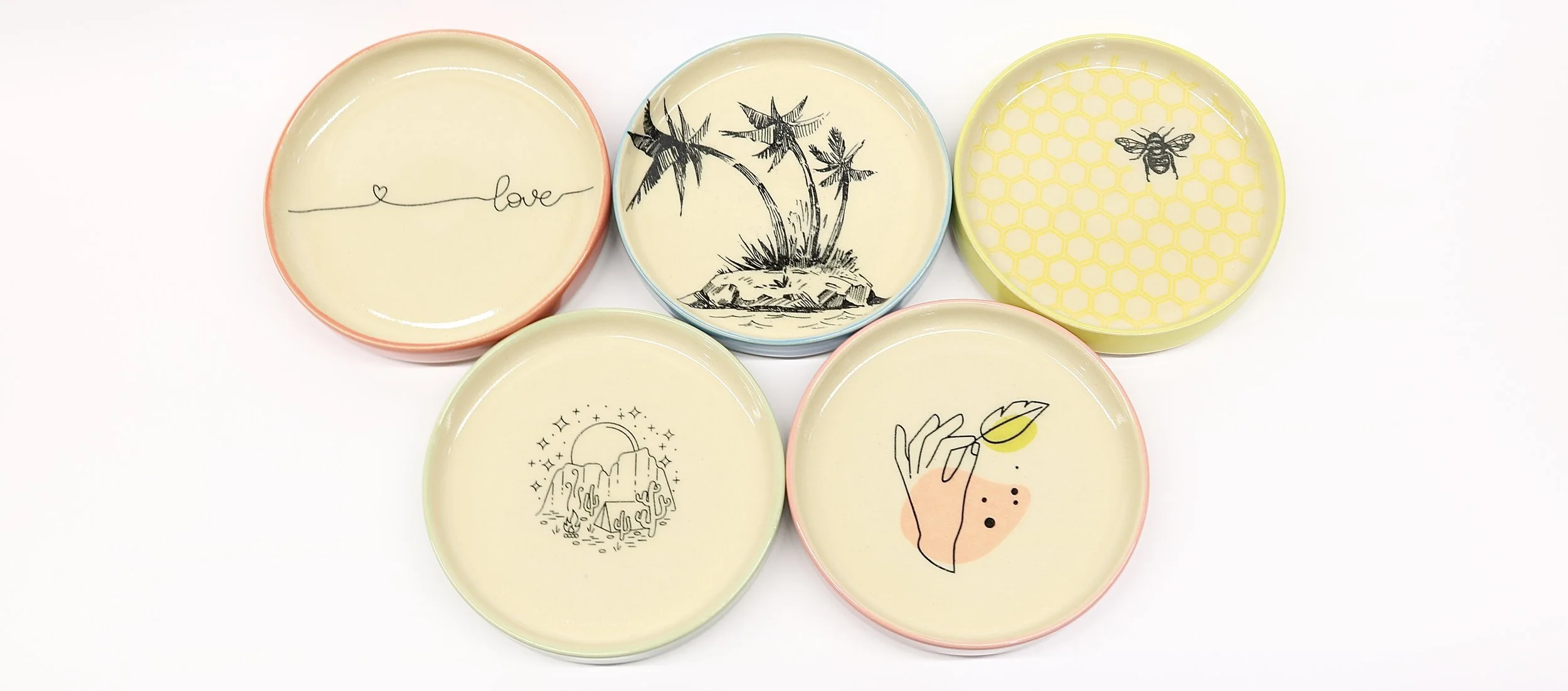 All pieces are handmade from stoneware clay, are food and drink safe, and can be placed in the microwave. Pieces can be put in the dishwasher for quick and easy clean up, however hand-washing will help them last longer!